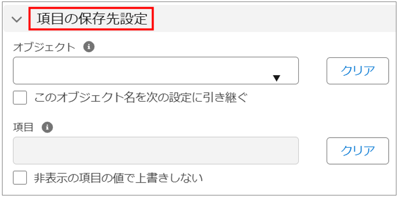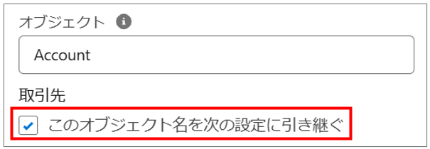 「このオブジェクト名を次の設定に引き継ぐ」にチェックを入れると、続けて他の項目の設定を