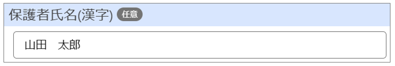 ①申請者が「保護者氏名(漢字)」に「山田 太郎」と入力し、申請する。