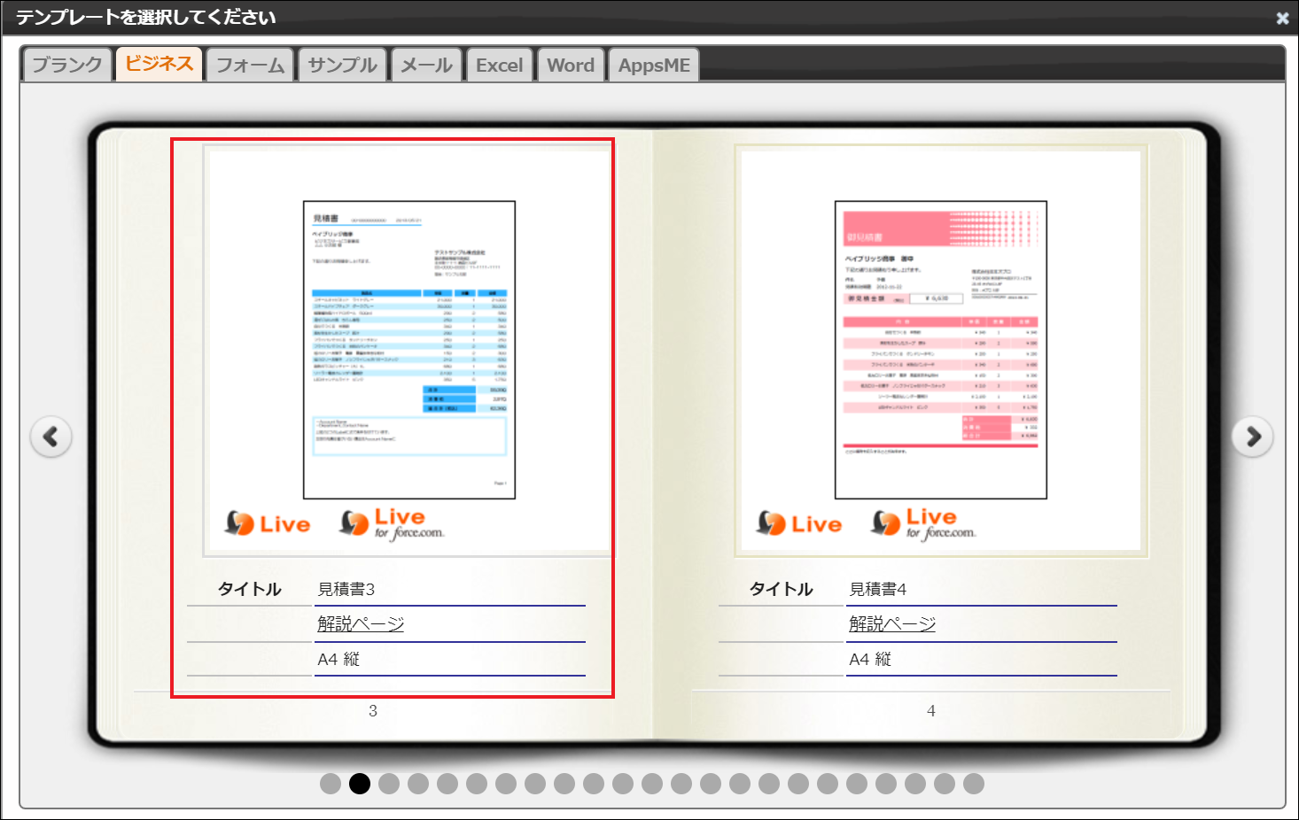 今回は、標準で用意されているサンプルテンプレート「見積書3」を使用します。