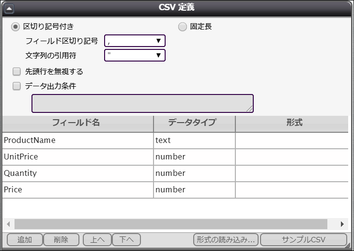 本テンプレートは、以下のCSVフィールドを持ちます。