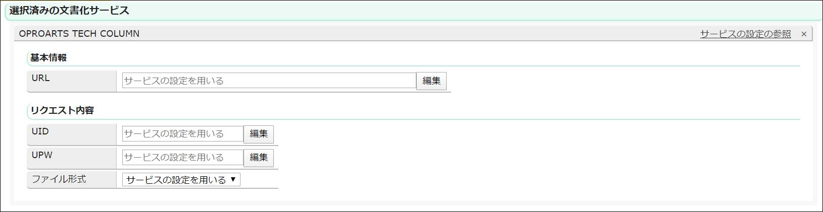 文書化サービスに「OPROARTS」を基に作成したサービスを指定します。
