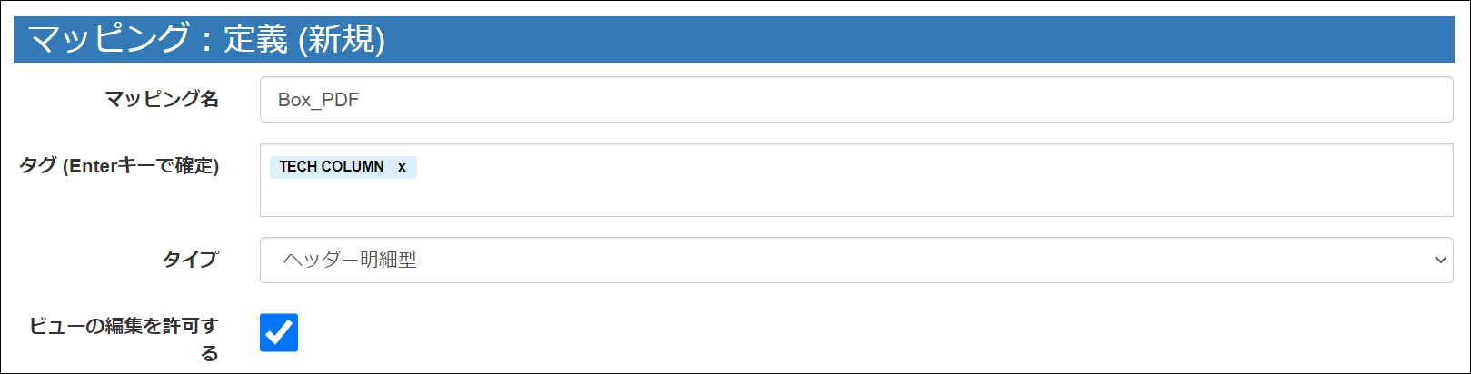 ※ 「ビューの編集を許可する」がOFFの場合は、マッピングで使用したビューを編集不可になります。