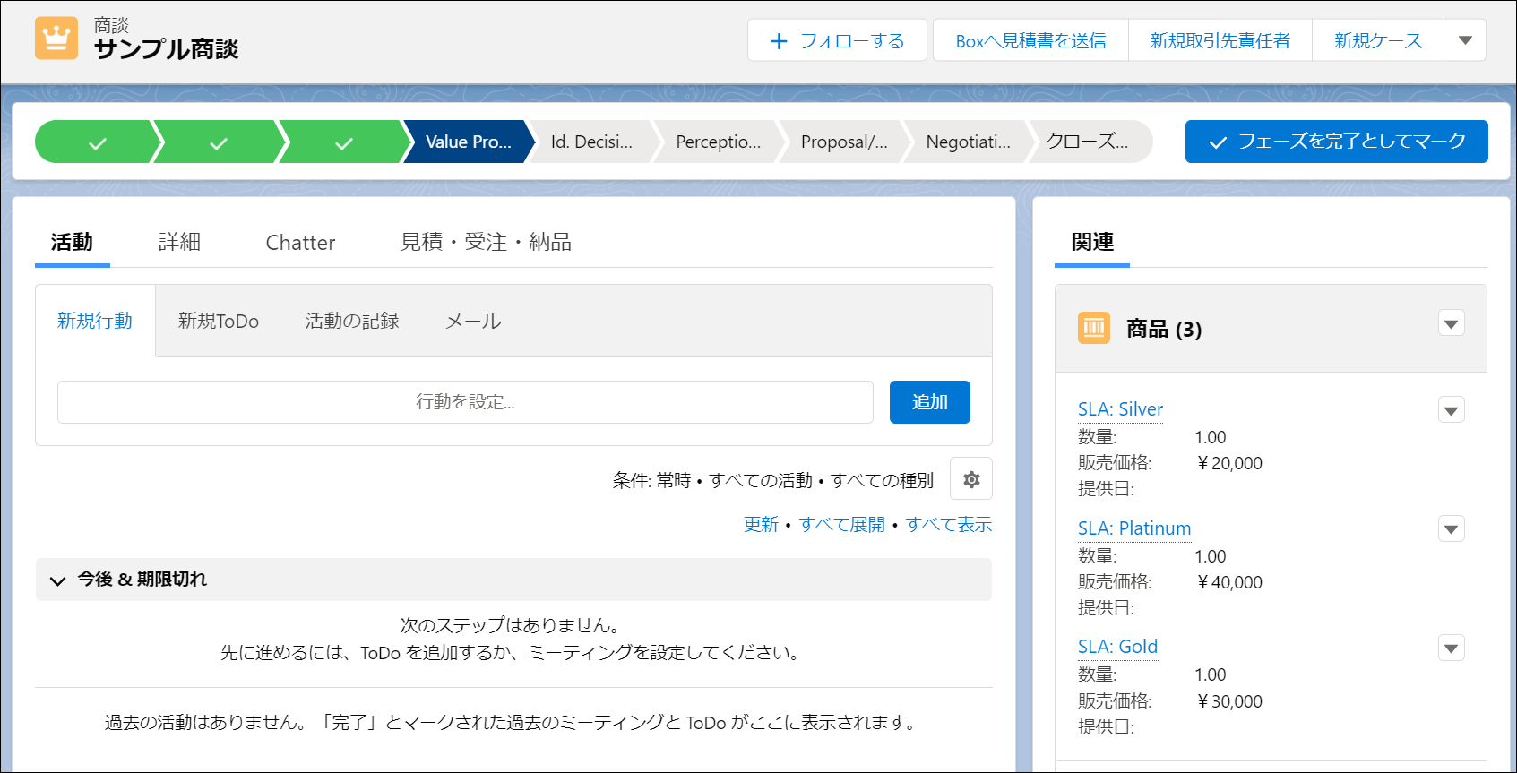 本記事では、一連の処理の起点に商談レコードを使用します。