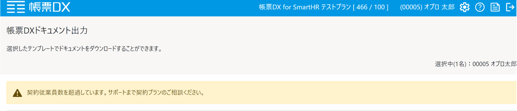 ユーザ数が契約ユーザ数を超過すると超過アラートが表示されます。
