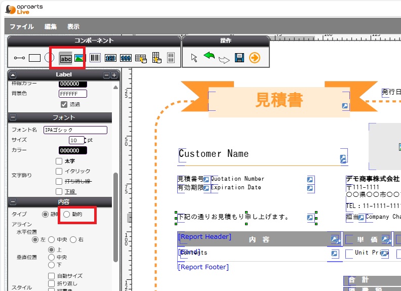 項目を追加する場合、レイアウトに「Label」を設置します。