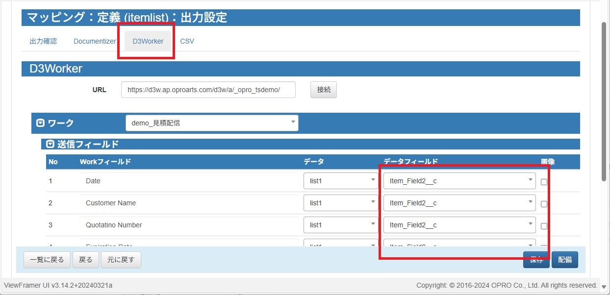 3.ViewFramerでSalesforceから取得する項目を変更し、D3Workerに紐づける