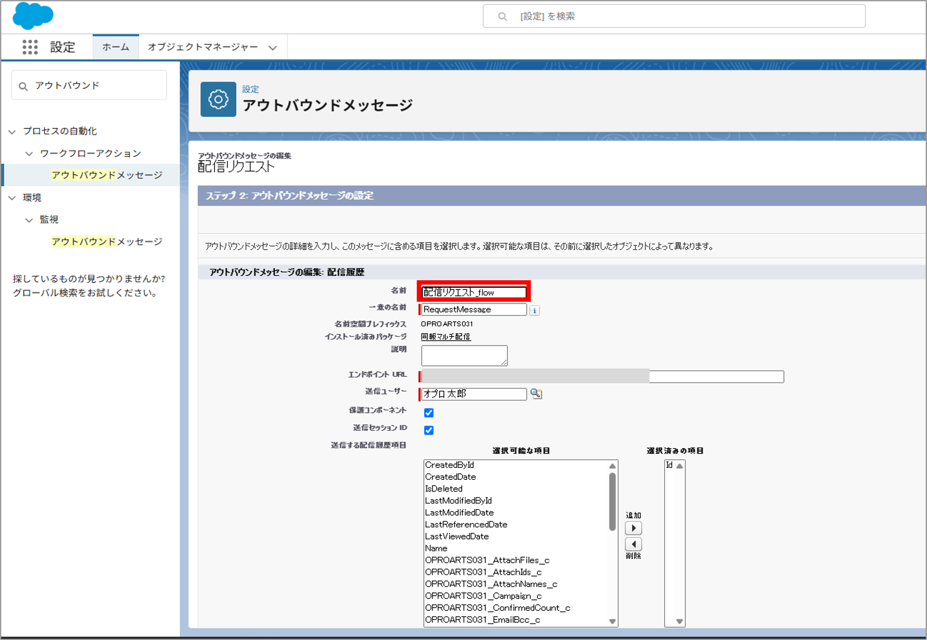 - 「ワークフローアクション」>「アウトバウンドメッセージ」を選択します。