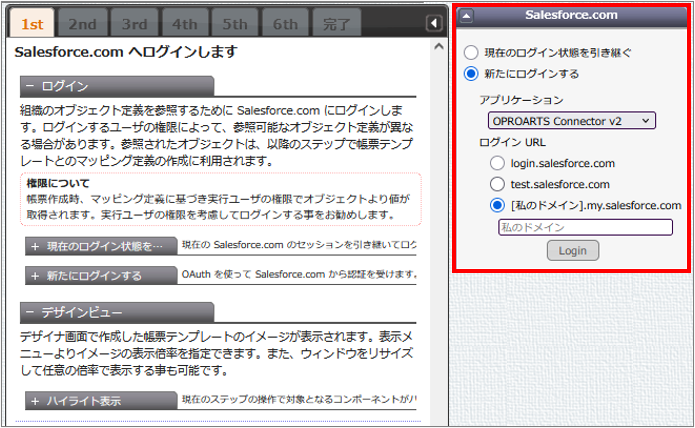 - 表示された Salesforce のログイン画面から Salesforce にログインします。