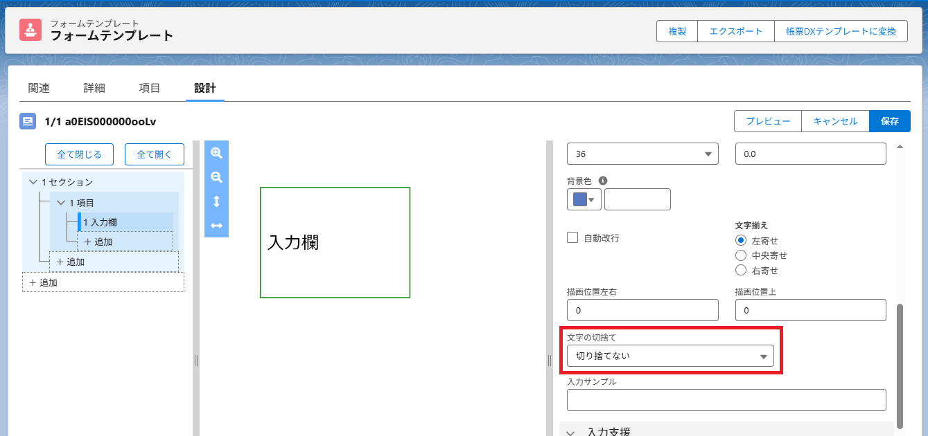 文字の切捨ての設定では、枠線からはみ出た文字の扱いが変わります。