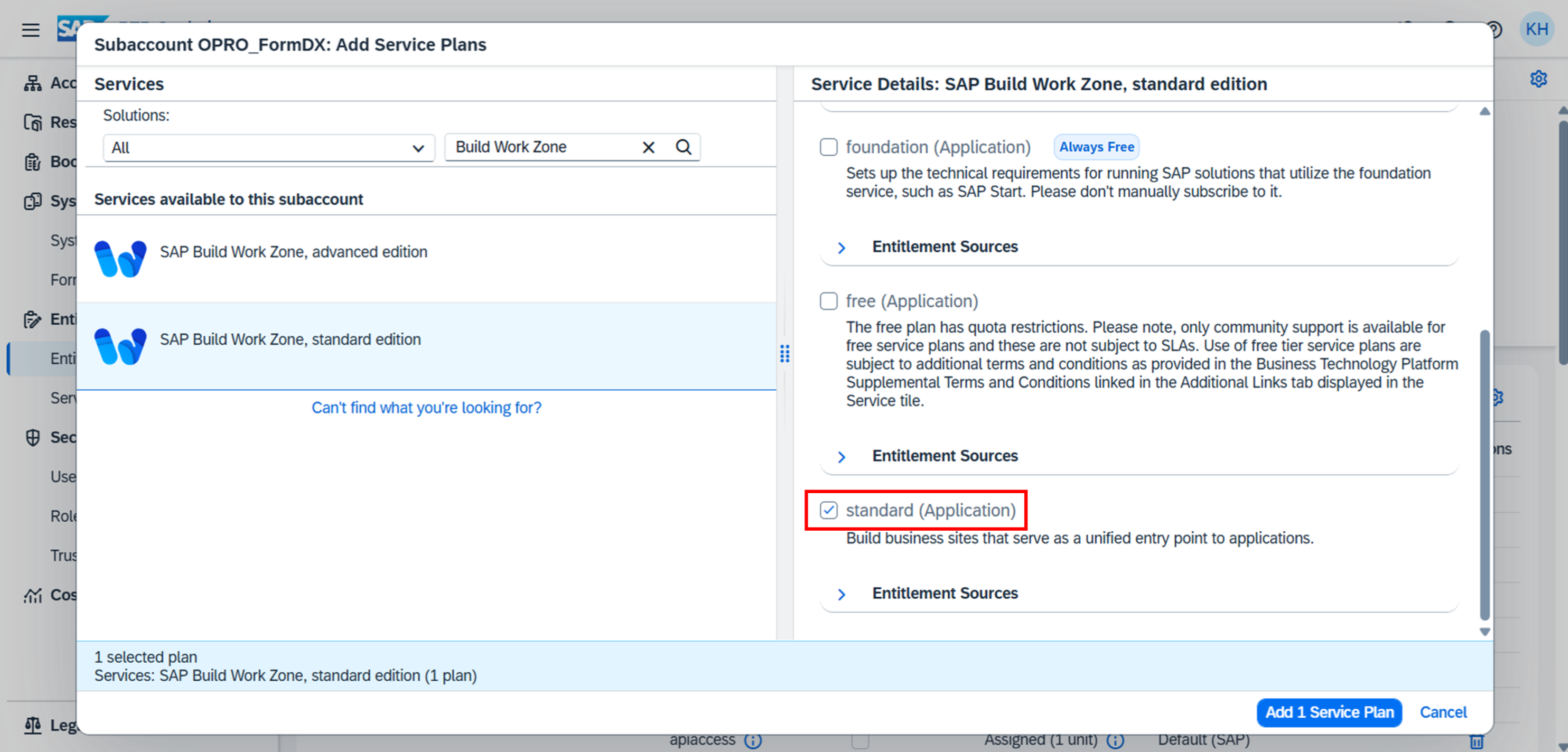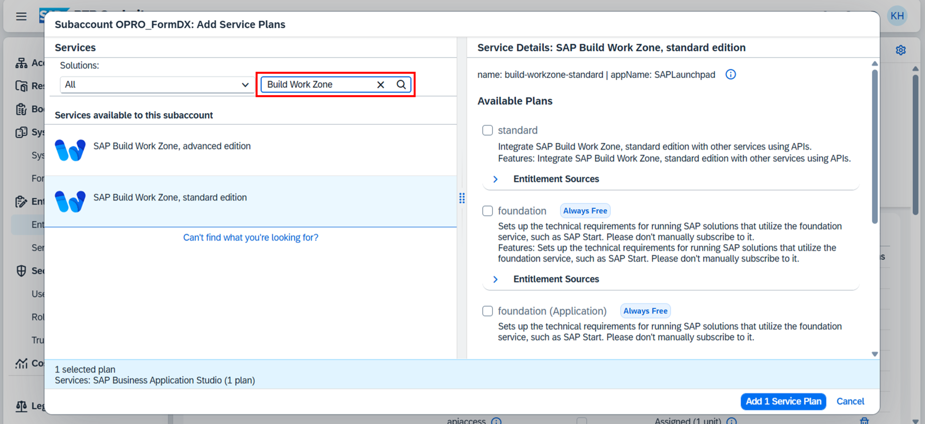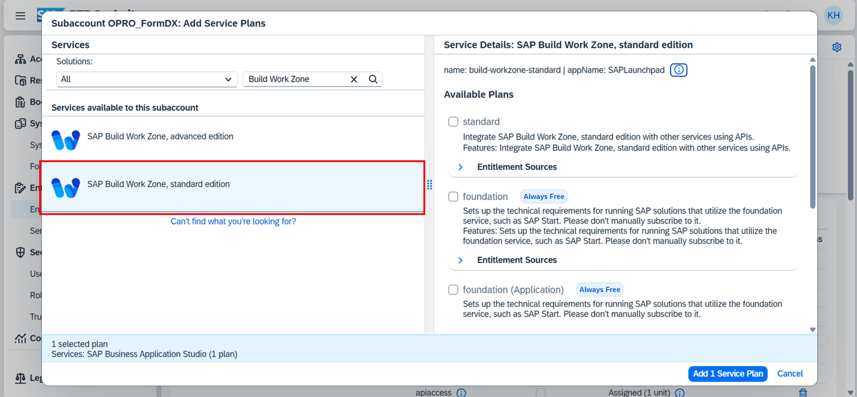 2. 「SAP Build Work Zone, standard edition」を選択する。