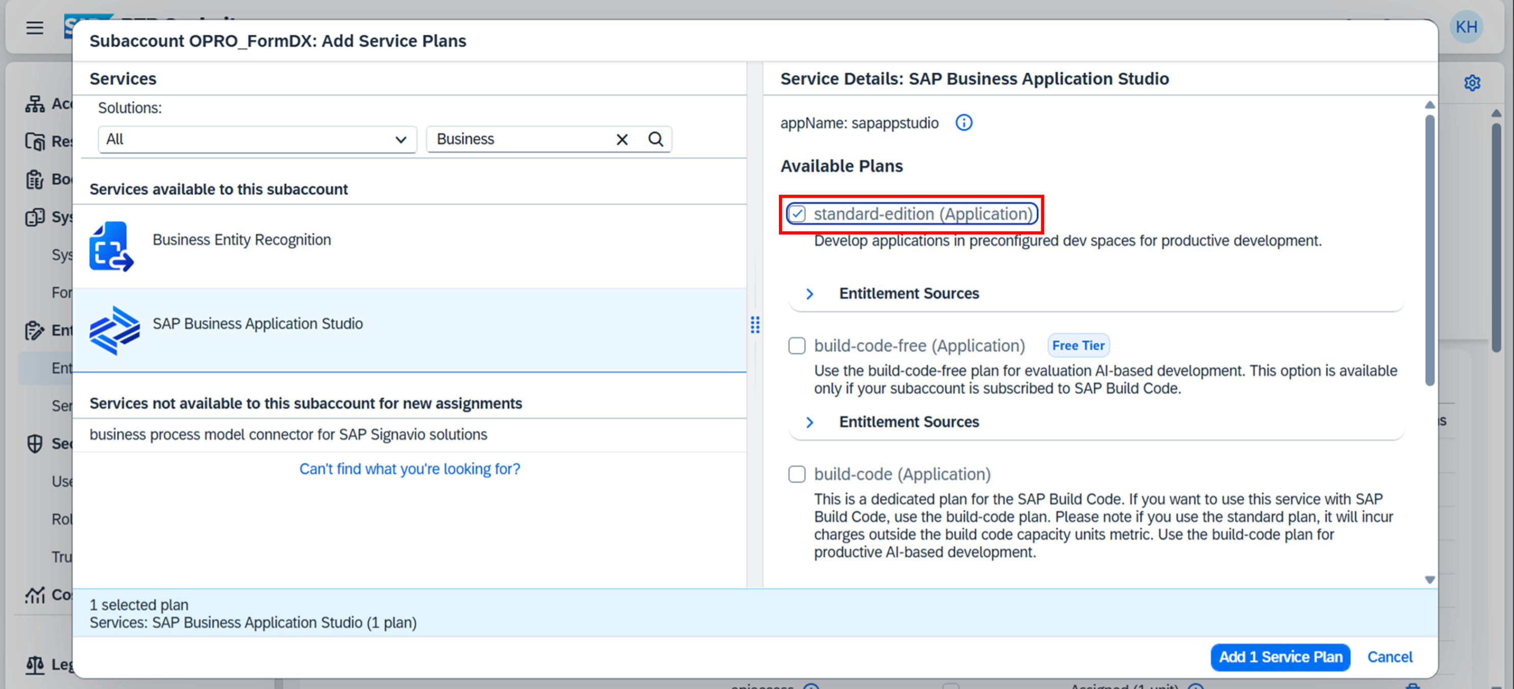 3. Available Plans で 「standard-edition (Application)」を選択する。