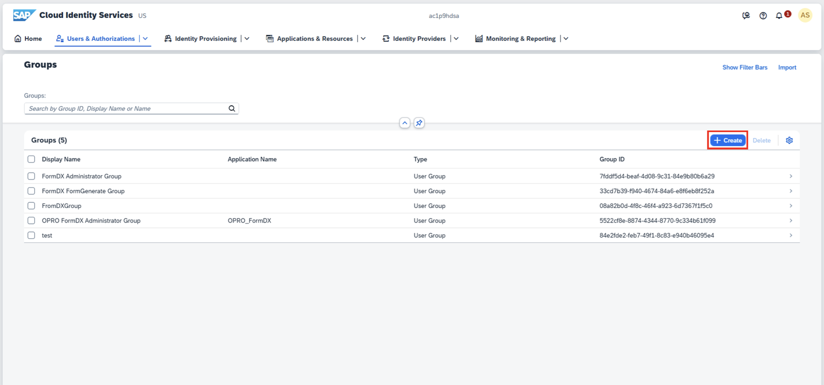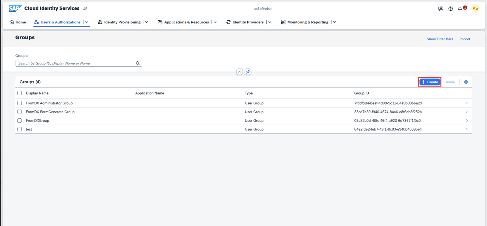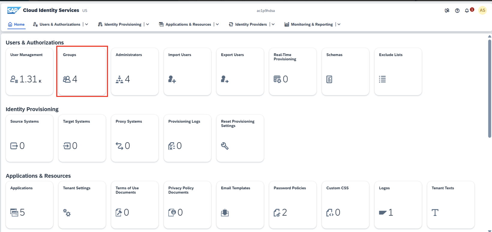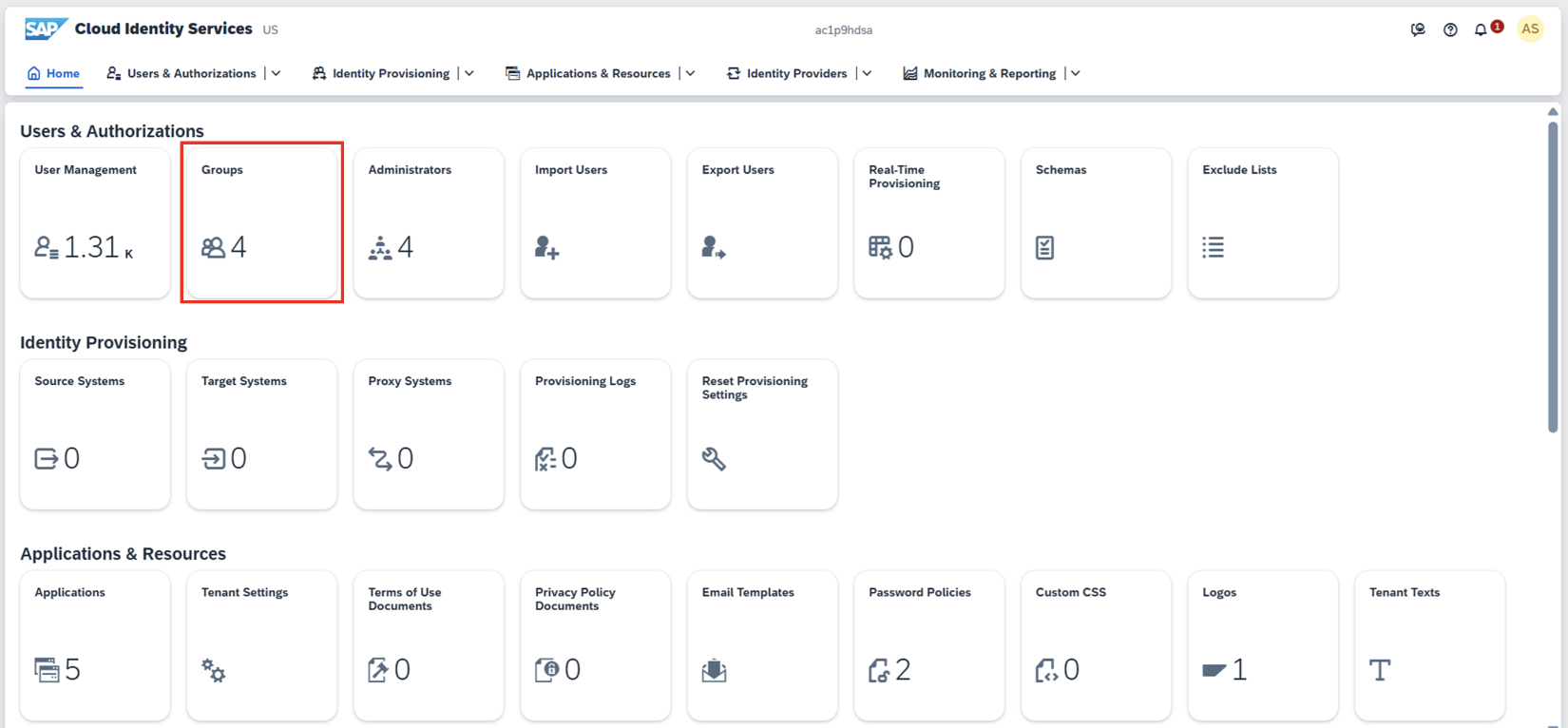 1. IAS>Users & Authorizations>Groups をクリックする。