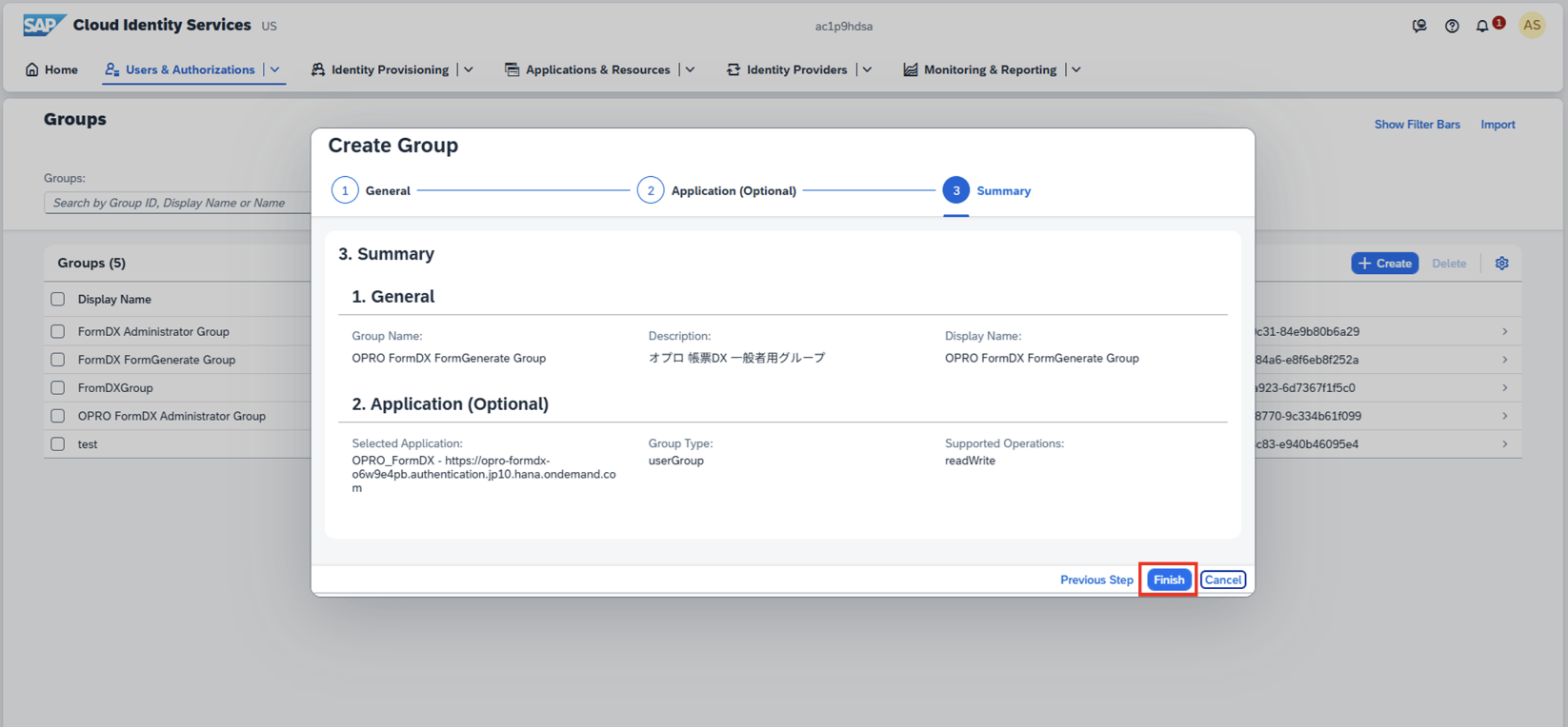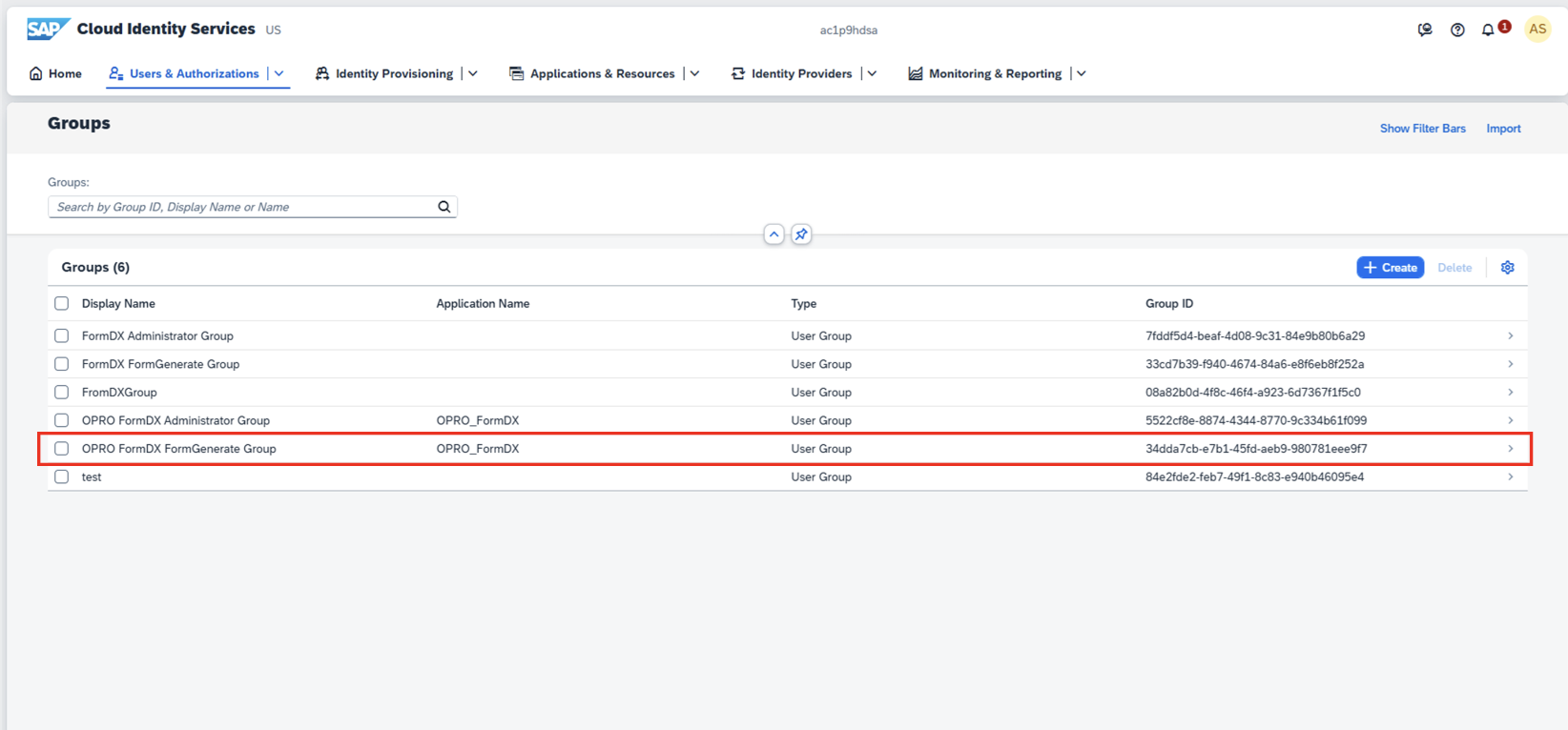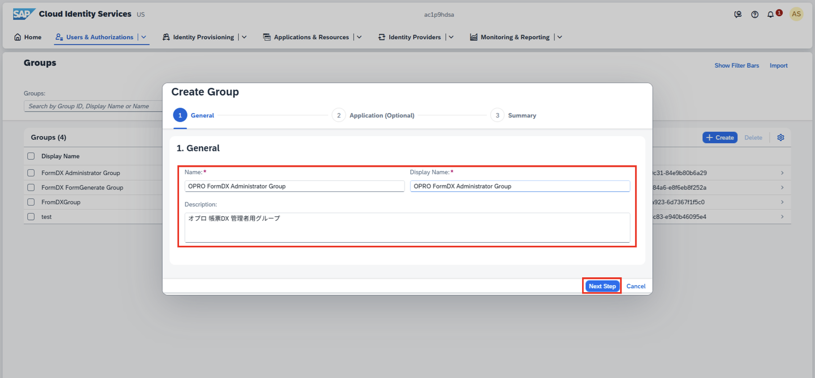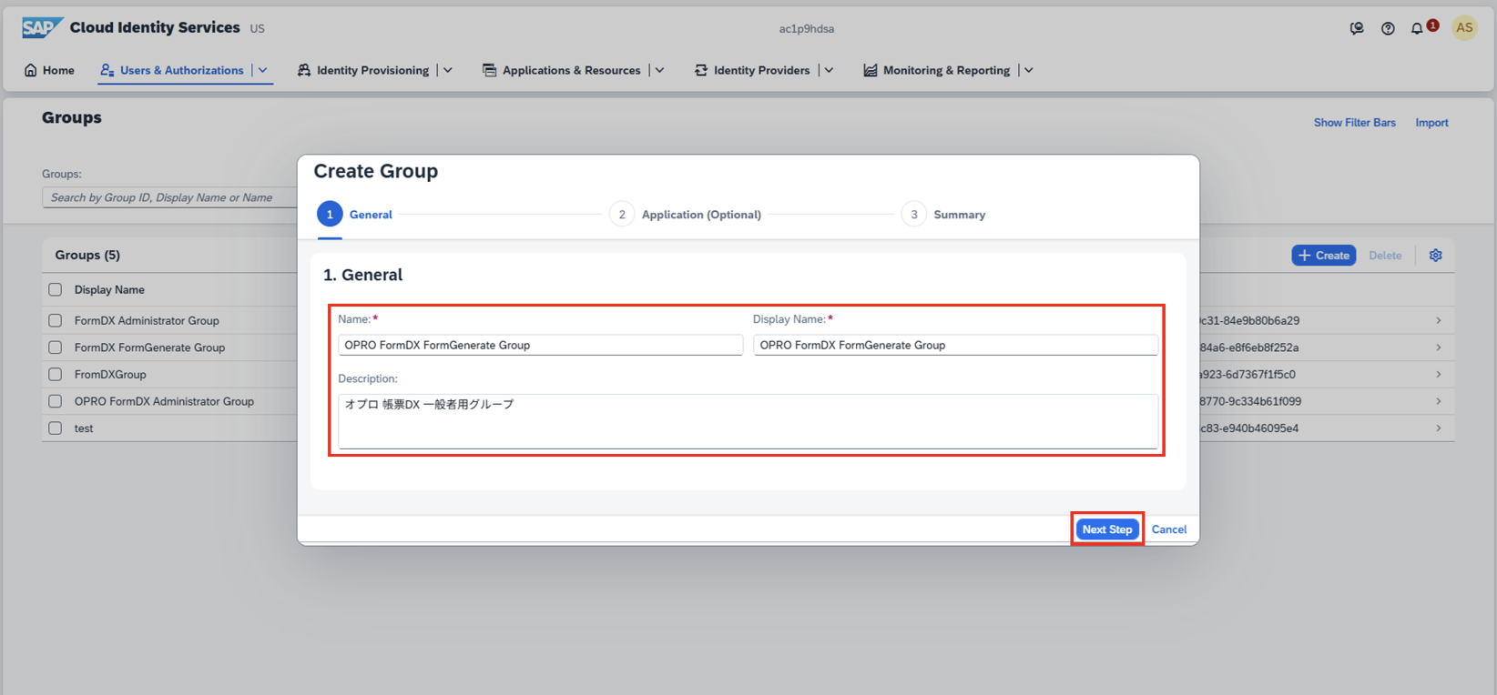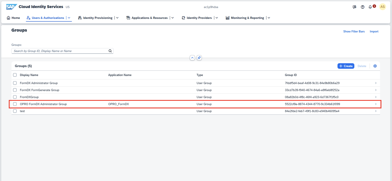 IAS上に「帳票DX for SAP」用のグループを2つ(管理者、一般者)作成する。