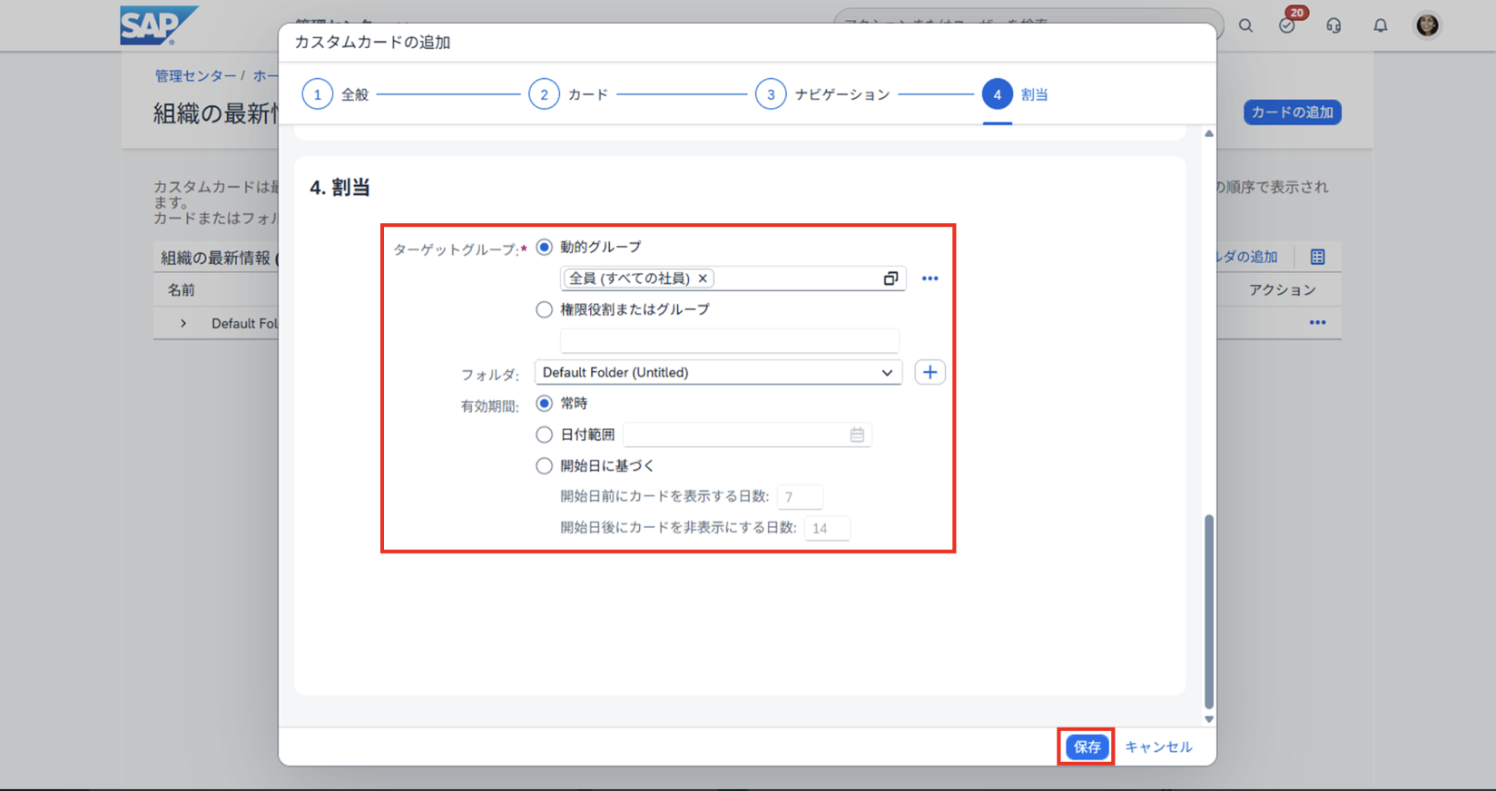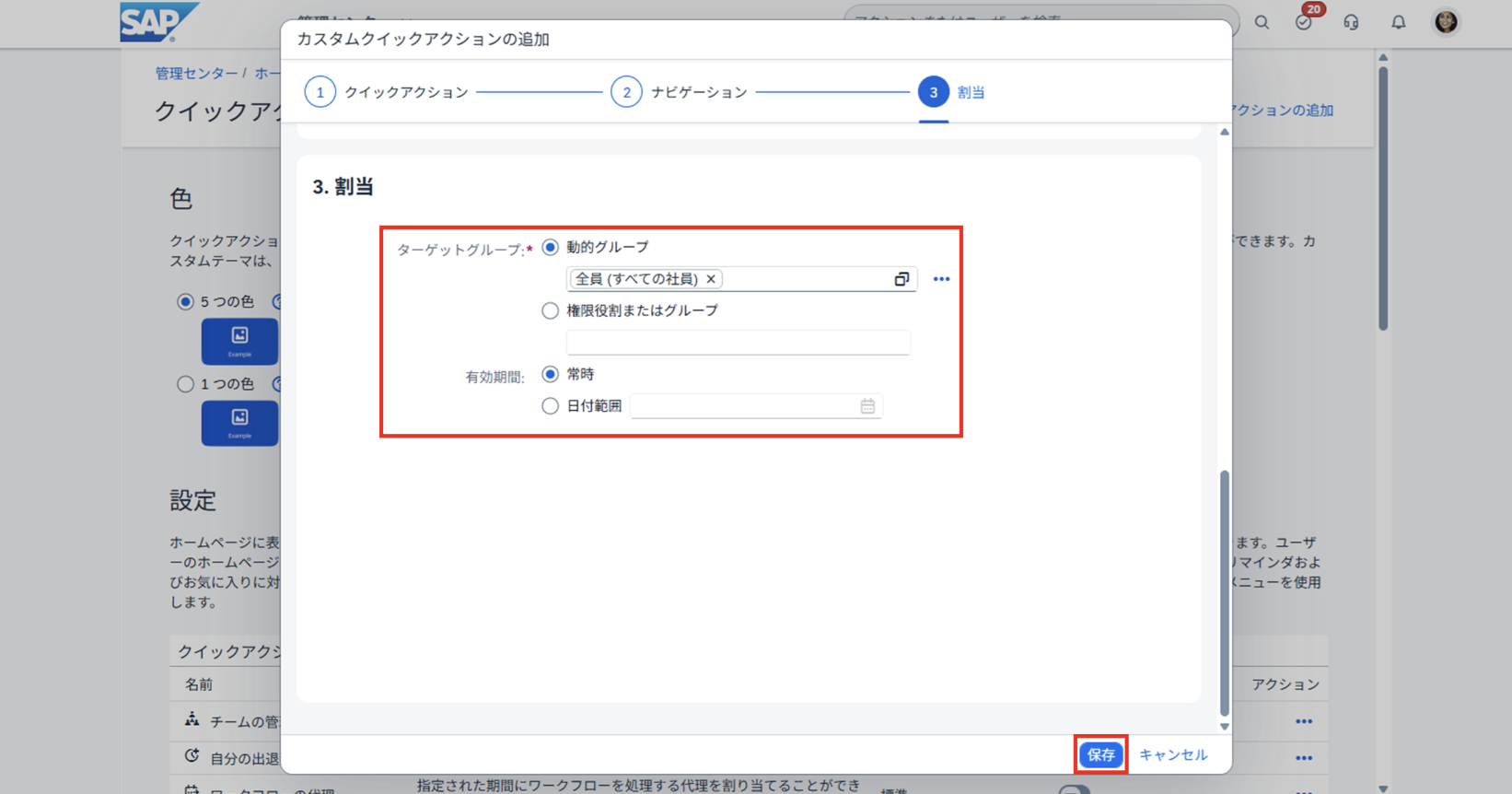 5. 割当情報を入力し、[保存] ボタンをクリックする。