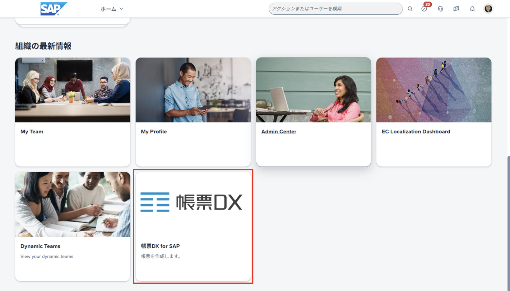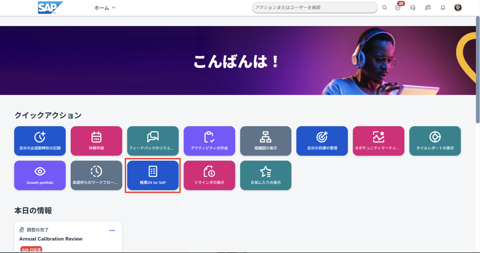 帳票DX for SAP 用のリンクをSuccessFactorsのトップ画面に作成する。