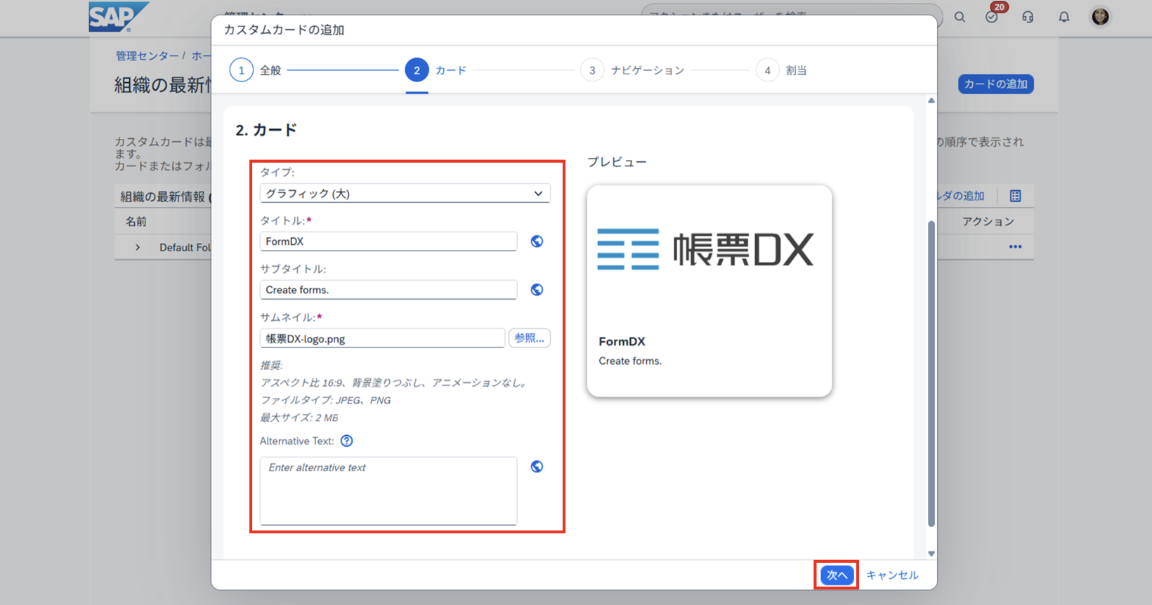 カード名任意(例:帳票DX for SAP)
