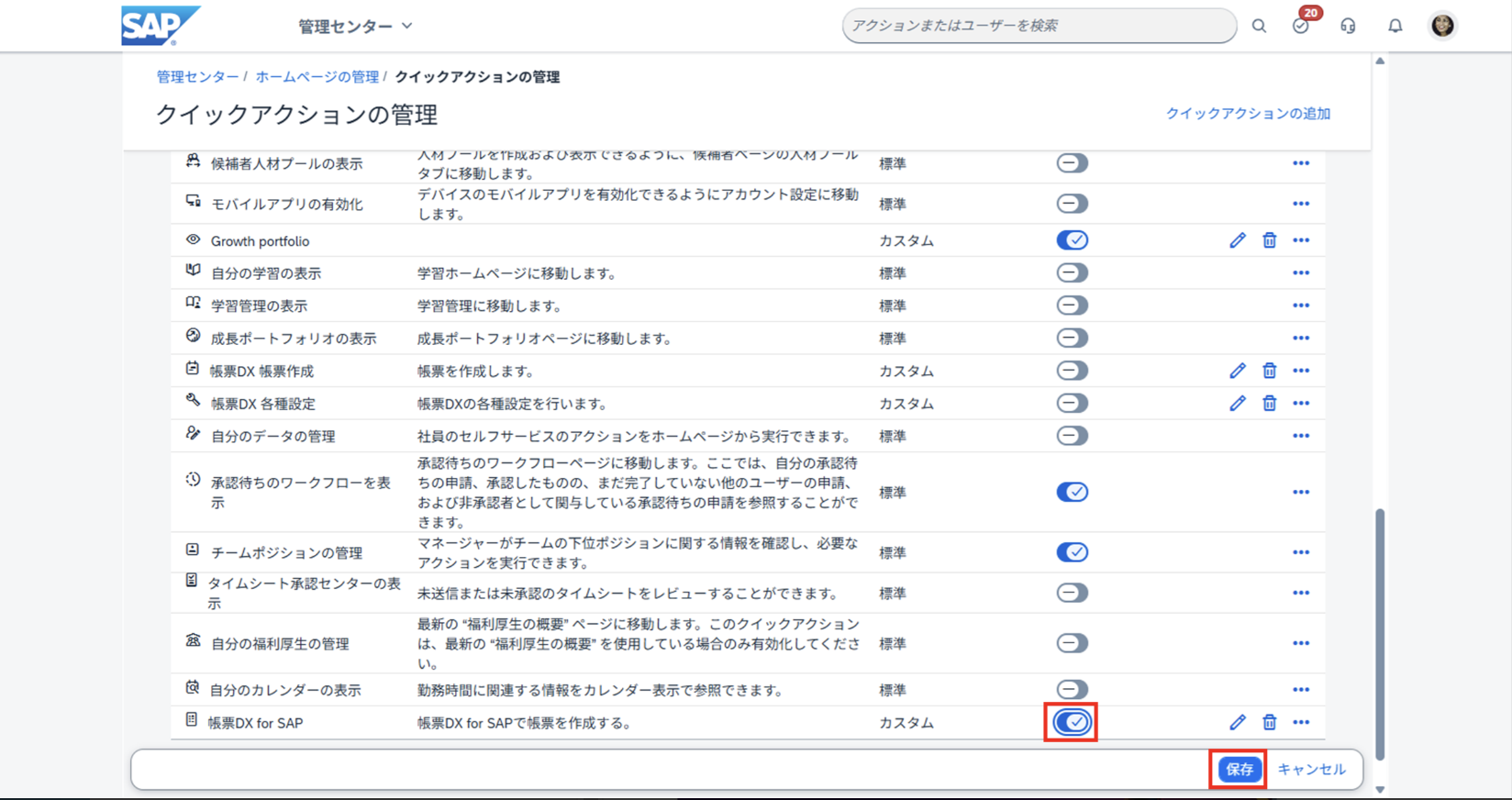 6. 追加したクイックアクションを有効化する。