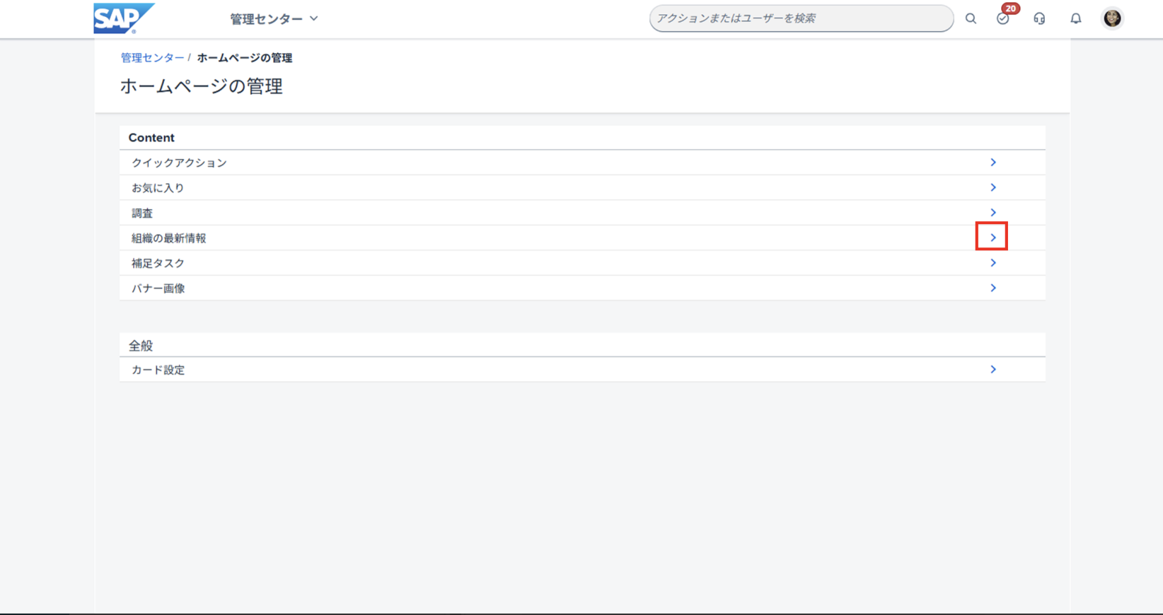 SuccessFactors>管理センター>ホームページ管理