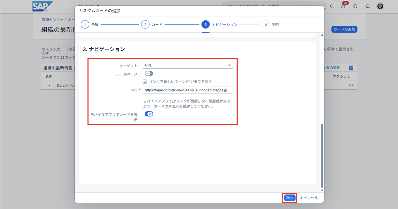 URLオプロから連携されたURL を入力(@No.16 SAP Build Work Zoneの設定(インポート) で取得するURL)