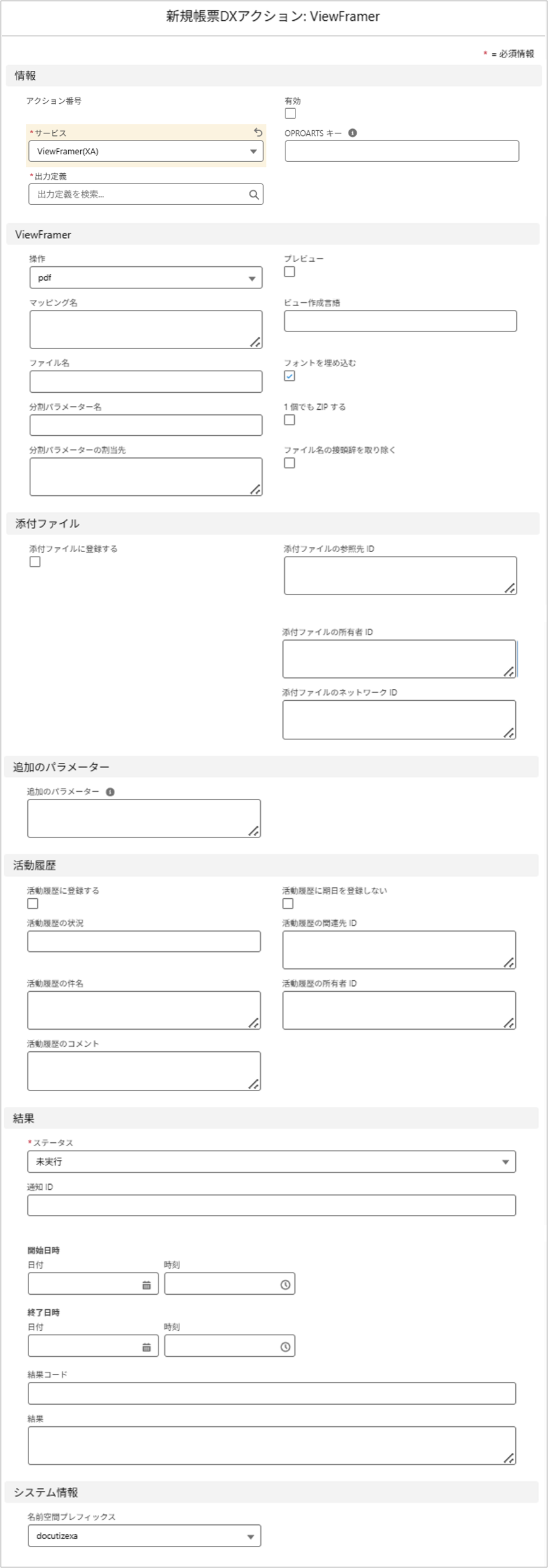 以下の情報を入力して、帳票DXアクションのレコードを作成します。