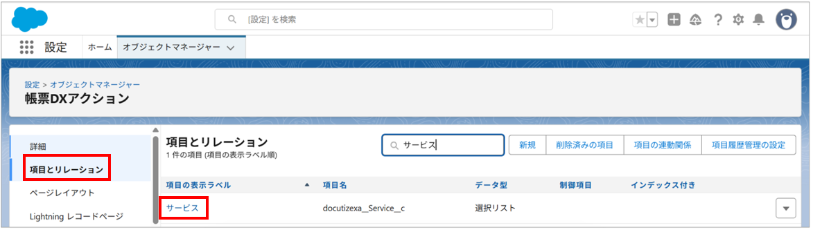 画面右上の「設定」>「オブジェクトマネージャー」を開きます。