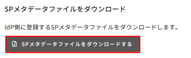 - システム管理者設定の「SAML設定」タブを開き、「SPメタデータファイルをダウンロードする」ボタンをクリックします。