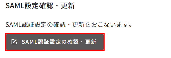 システム管理者設定の「SAML認証設定」タブを開き、「SAML認証設定の確認・更新」ボタンをクリックします。