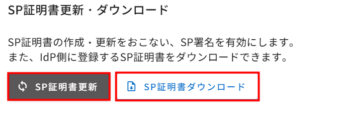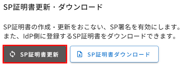 ※SP証明書を更新した場合は、更新後のSP証明書をIdPにアップロードし直す必要があります。