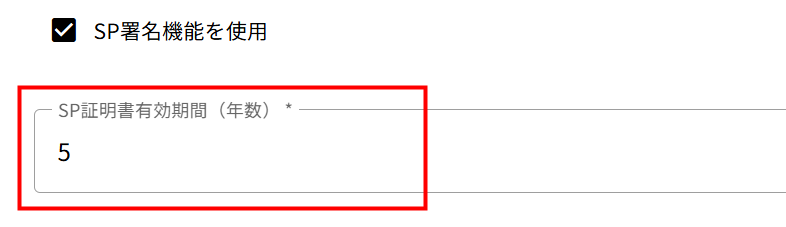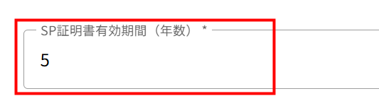 - 「SP証明書有効期間(年数)」を数値で入力します。