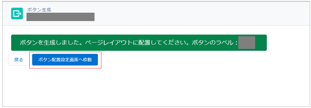 ボタン生成完了画面が表示されます。 「ボタン配置設定画面へ移動」ボタンをクリックします。