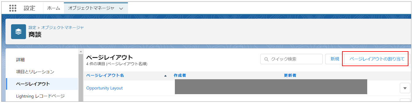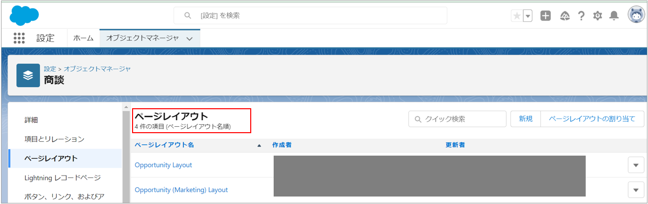 💡補足使用しているページレイアウトは「ページレイアウトの割り当て」ボタンから確認できます。
