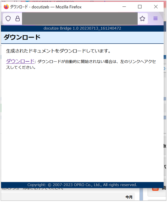 「ダウンロード」ウィンドウが表示され、出力が完了します。