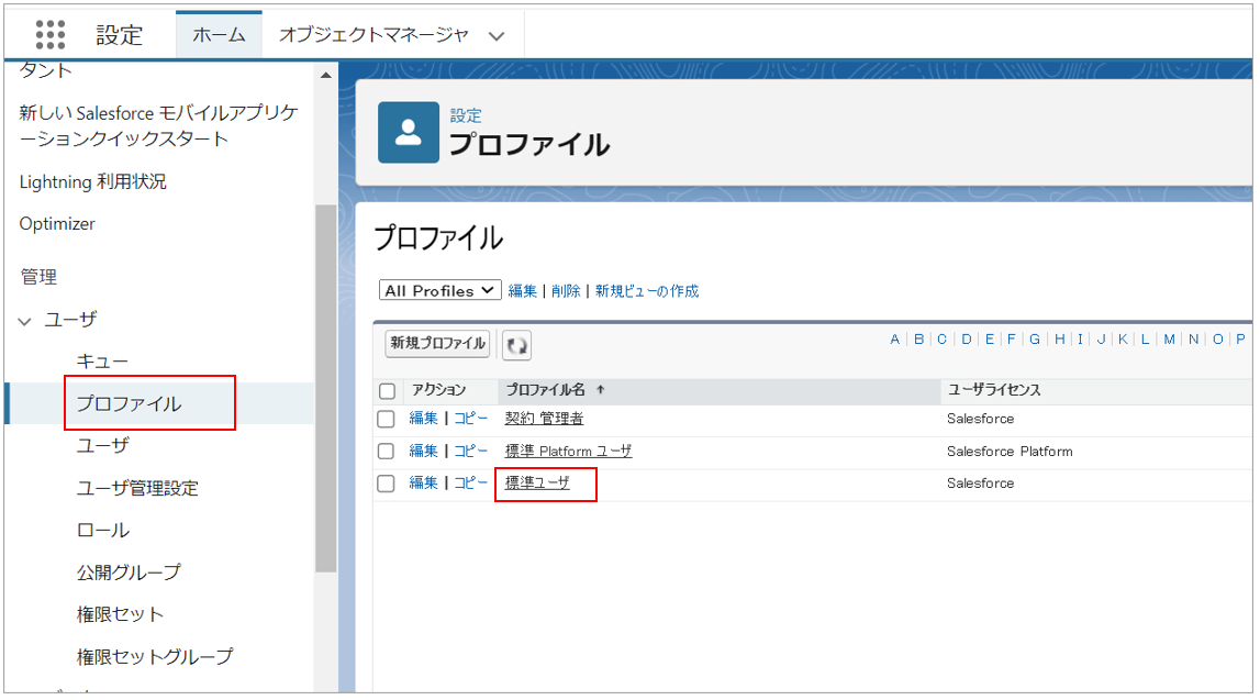 ボタンから帳票出力をさせたいユーザーのプロファイルをクリックします。