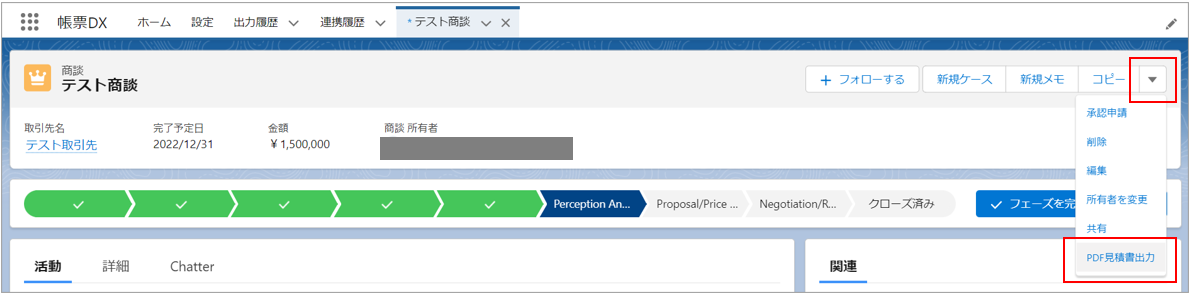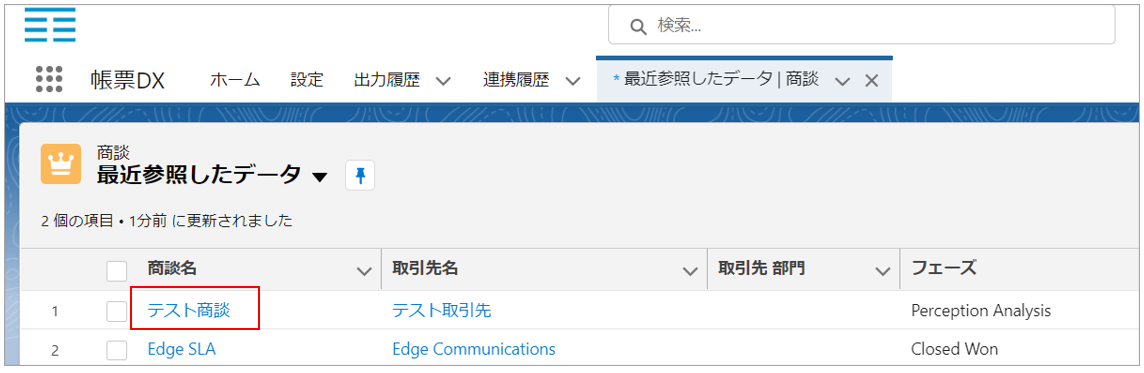 出力する商談レコードのリンクをクリックします。