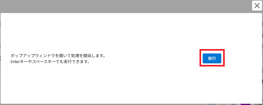 実行確認のダイアログが表示されます。「実行」ボタンをクリックします。