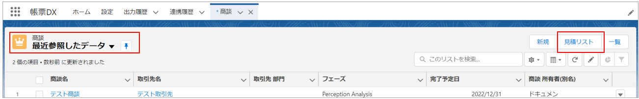 「商談リストビュー」が表示されます。