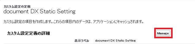 「Manage」ボタンをクリックして document DX Static Setting の編集画面を表示します。