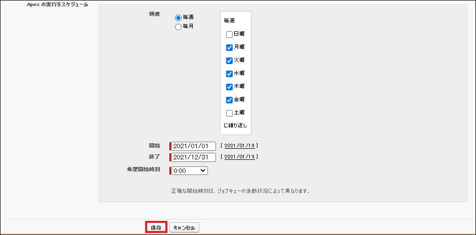 (スケジュールを行ったSalesforceユーザを無効化しなければならない場合は、既存のスケジュールを削除し、有効なSalesforceユーザで再度スケジュールし直すなどのメンテナンス作業を行ってから無効化してください)
