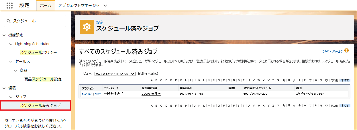 尚、スケジュールされたジョブは以下の画面から確認可能です。