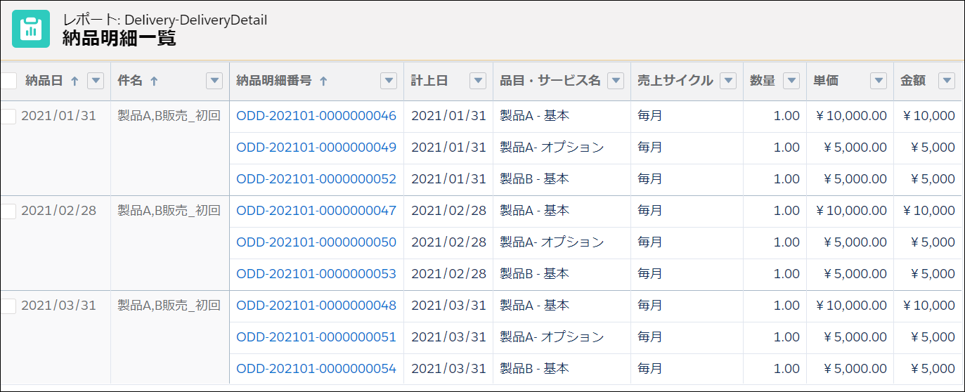 その際に以下の納品明細が作られたとすると、どのような分析レコードが作成されるでしょうか。