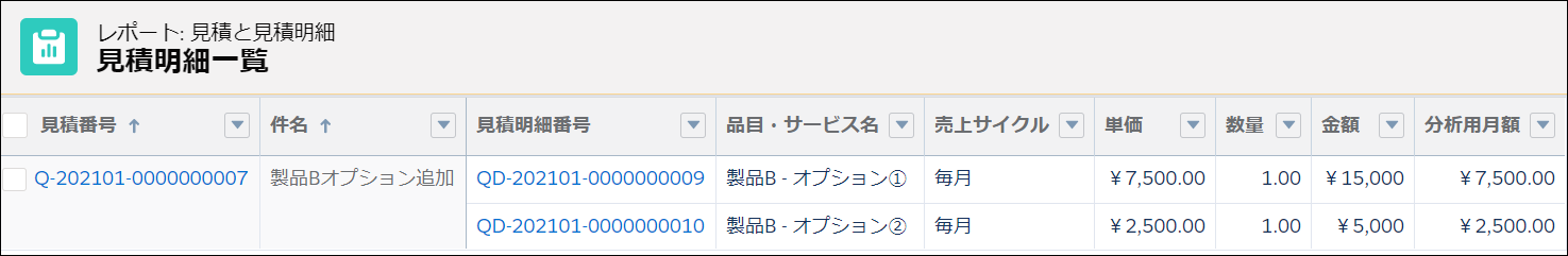 その際の見積明細が以下であったとすると、どのような分析レコードが作成されるでしょうか。