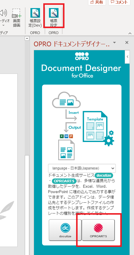 アドイン「Document Designer for Office 」を入れます。