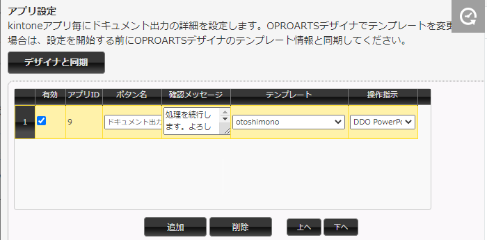 この後は、kintoneに移動して、「OPROARTS Connector for kintone」か「ドキュトーン」で、kintoneのどのアプリのどのフィールドをこのテンプレートに渡すかを設定します。