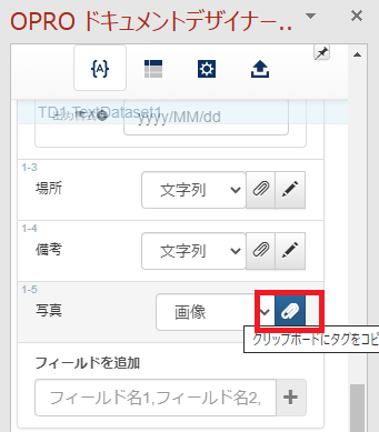 クリップマークをクリックして、タグをコピーします。