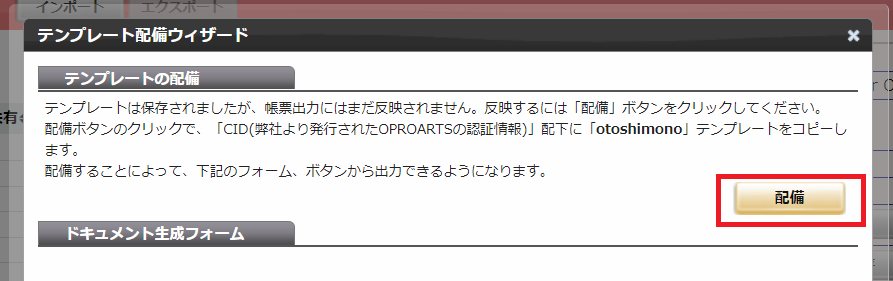 テンプレートが生成されたら「配備」をクリック→もう一度「配備」をクリックして、テンプレートをOPROARTSサーバに配備します。