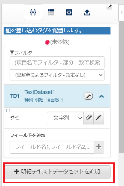 「明細テキストデータセットを追加」をクリックして、もう一度「追加」をクリックします。